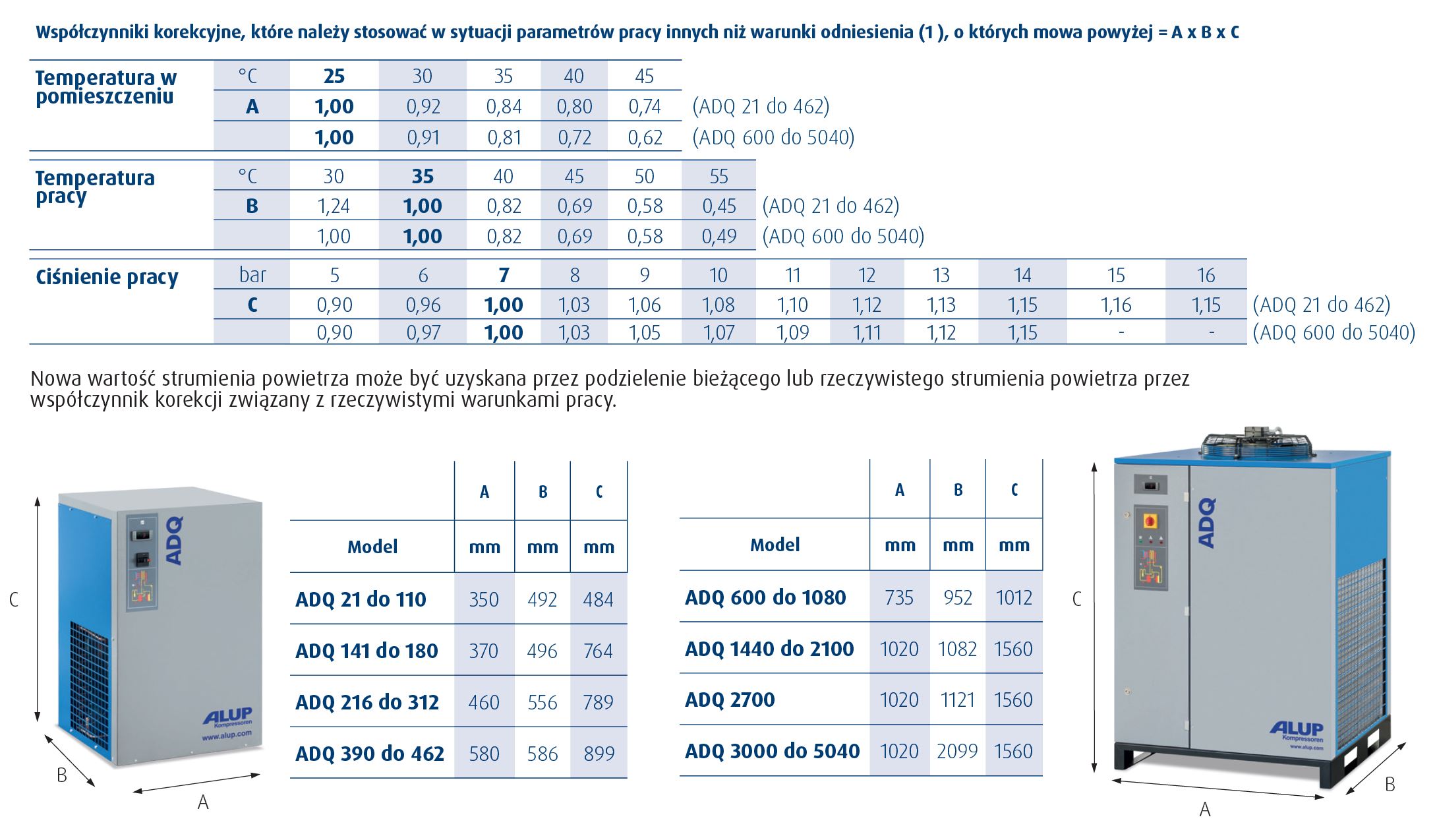 • Kompatybilność z każdą techniką sprężarkową i wystarczającą dla ponad 95% zastosowań przemysłowych (osiągnięcie PDP maks. +3°C w warunkach odniesienia).
