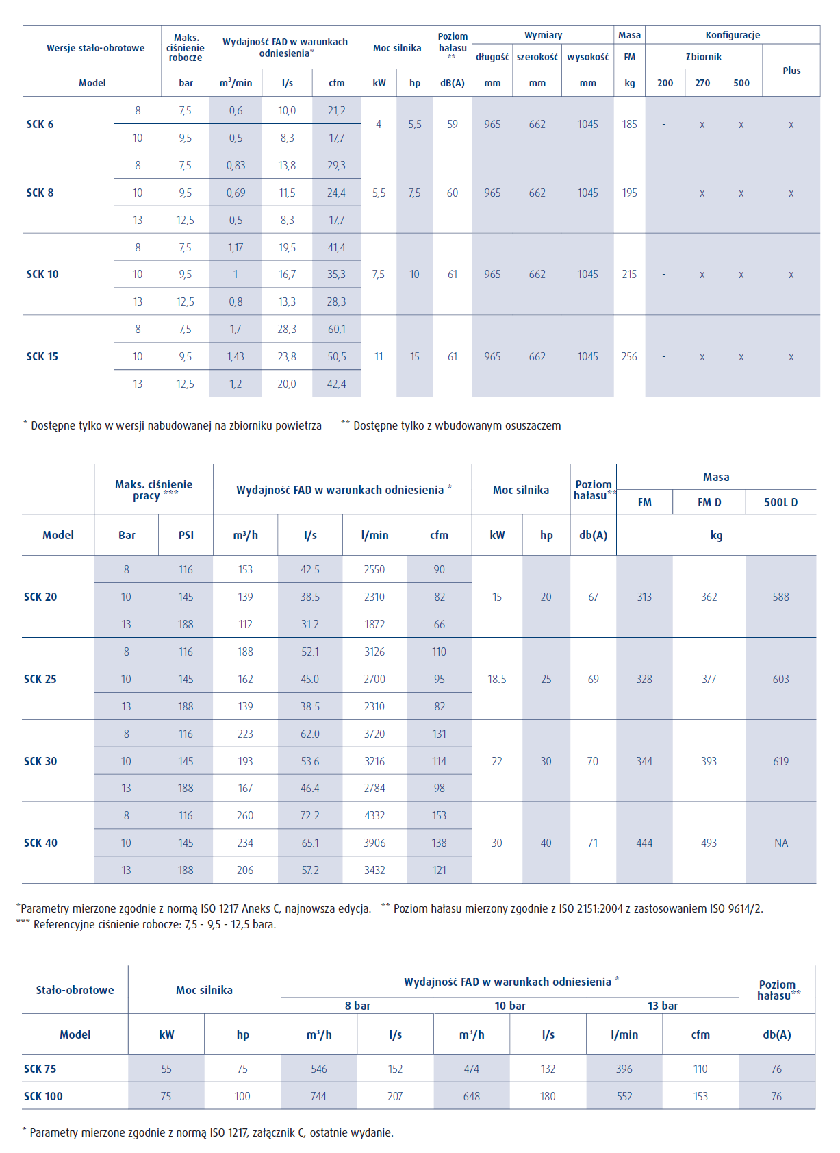 SCK to szeroka gama sprężarek z napędem pasowym o stałej prędkości obrotowej. Dzięki